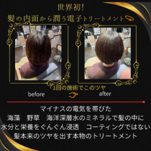 電子トリートメントは、ダメージや年齢とともに失われやすい髪の水分.ミネラルを内側から満たす