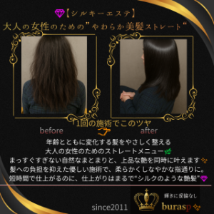 シルキーエステを施しながら毛先にデジタルパーマで柔らかなカールを加えるワンランク上のデザイン クセを落としつつ、自然な動きと上品な仕上がりを同時に叶える人気の組み合わせです。